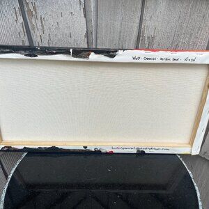 Wolf Silhouette Acrylic Pour Painting Orange Signed LAM 10" x 20". It's painted on a 10x20 inch canvas and sealed with Liquitex Gloss Varnish. The painting is signed by me the artist
