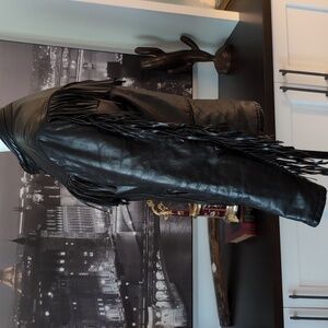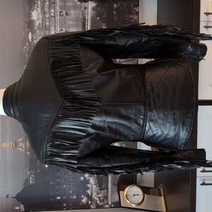 Wolff Women's Black Leather Fringe Biker Jacket, Size 38.