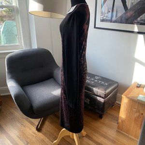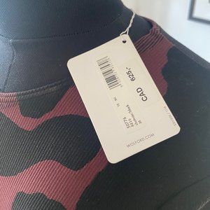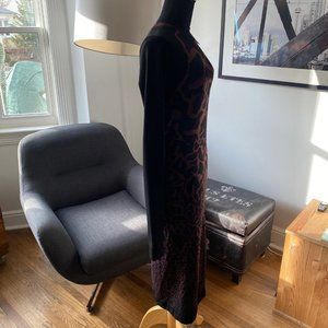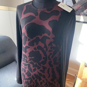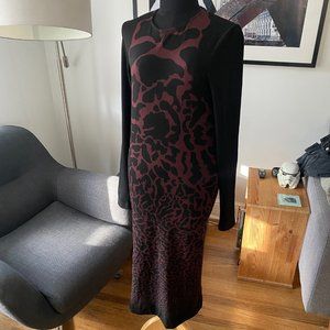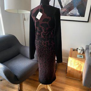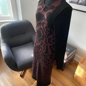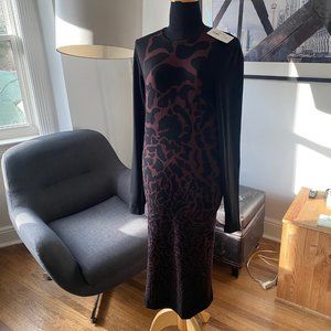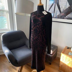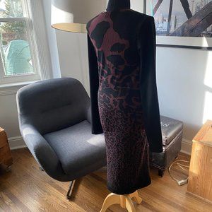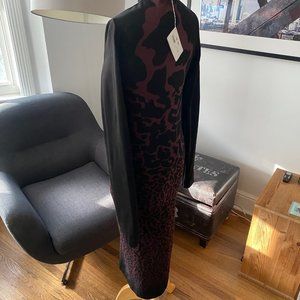 Seamless, matte and unparalleled when it comes to style, this dress is right in line with the animal trend. The mid length and wide-cut, oversized sleeves ensure a perfect feel when worn. Black with deep burgundy/wine animal like print.