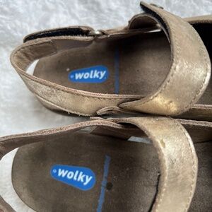 Wolky Sandals 2 Strap Comfort Hook & Loop Mottled Gold Size 38 US Size 7