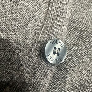 This classic Wolsey cardigan offers timeless style with understated detail. Crafted in a soft greige knit, it features subtle textured vertical striping, welt-style front pockets, and a ribbed hem and cuffs for a refined finish.