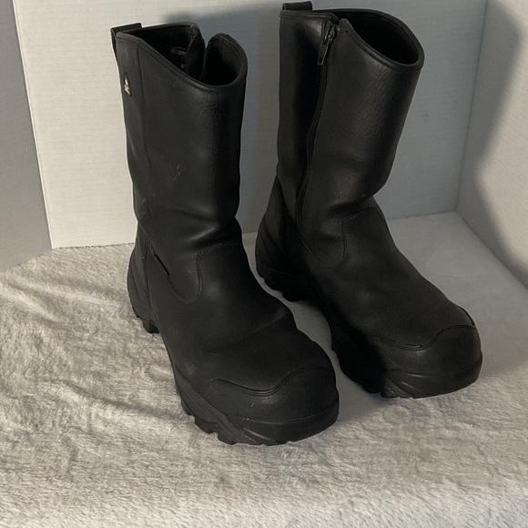Durable black steel toe CSA boots. Sleek design. Perfect for rugged wear.