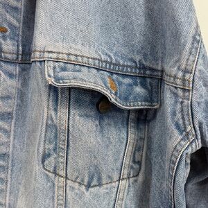 Classic Wolverine denim jacket. Features button closure and chest pockets. Perfect for casual wear.