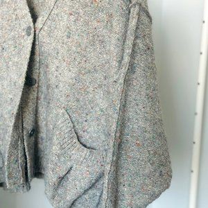 This cozy knit sweater jacket is really comfortable. It is oversize fit and the grey is easy to wear with other colours.