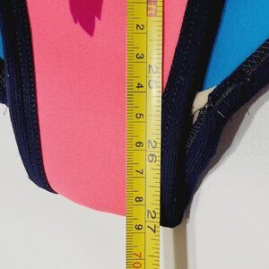 Woman Pink & Blue Floral Print Racer Back Beach One Piece Swimsuits Bathing Suit