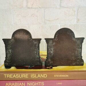 Woman Sewing Cast Iron Bookends HEAVY Greek Columns Ornate Decor Book Shelf Pair Bookends