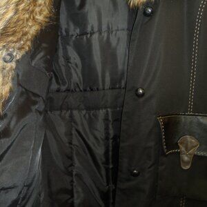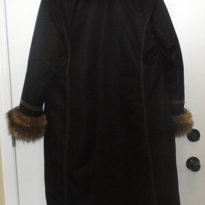 Stylish brown classic parka with fur-trimmed . Perfect for cold weather.