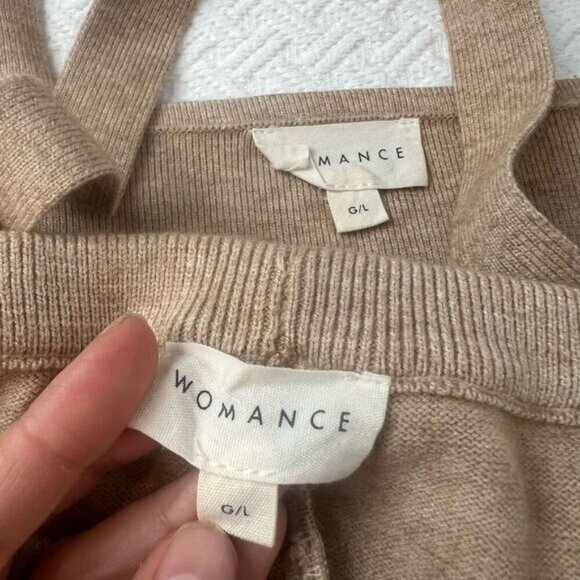 Womance Womens Medium 2 Piece Outfit Set Knit Top Cardigan Tan Oatmeal Cozy Boho