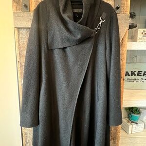 Originally purchased from Plum. Size XL. Wool/Rayon overlapping coat with clasp. Asymmetrical hem.