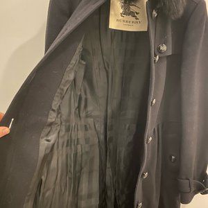 Woman's Burberry Coat with Fur Collar - Size US 6 or UK 8