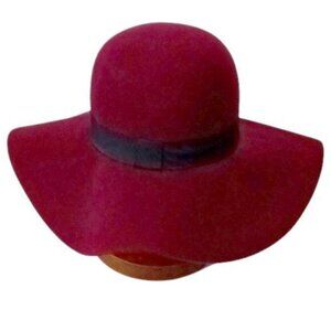 Woman's Burgundy Wide Brim Floppy Felt Hat with Black Band