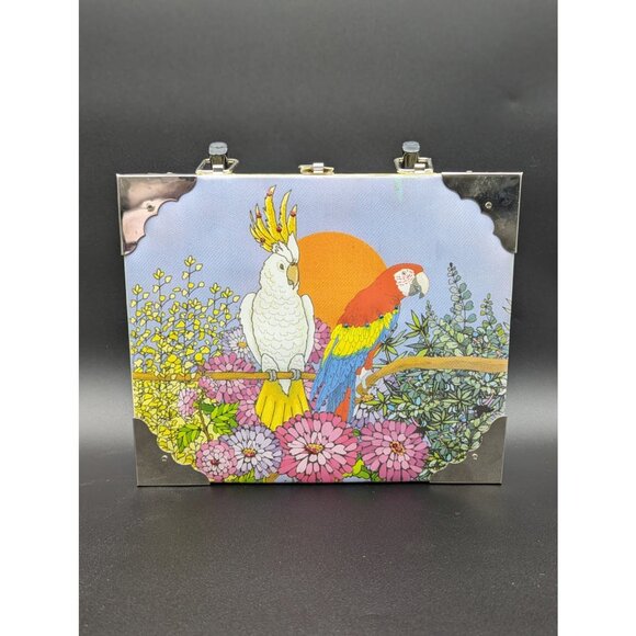 Woman's Cigar box Purse Adornment box with Tropical birds, Parrots, Floral Motif