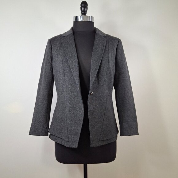 Womans Grey Business Career Suit Peplum Blazer Jacket Sz M Stretch Comfort