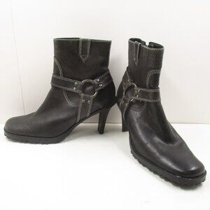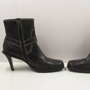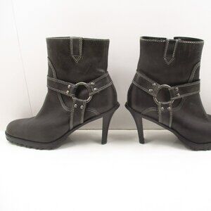 Womans HARLEY-DAVIDSON Ankle Buckle Zipped Boots Black Leather 3" Heel Size 8