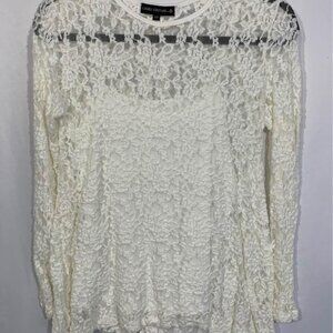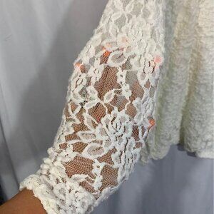 Woman’s lace long sleeve. Built in camisole. Lots of stretch. Candy couture size small. Off white.