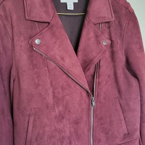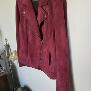 Womans Stylish Old Navy Faux Suede Zippered Jacket Burgandy Large Petite