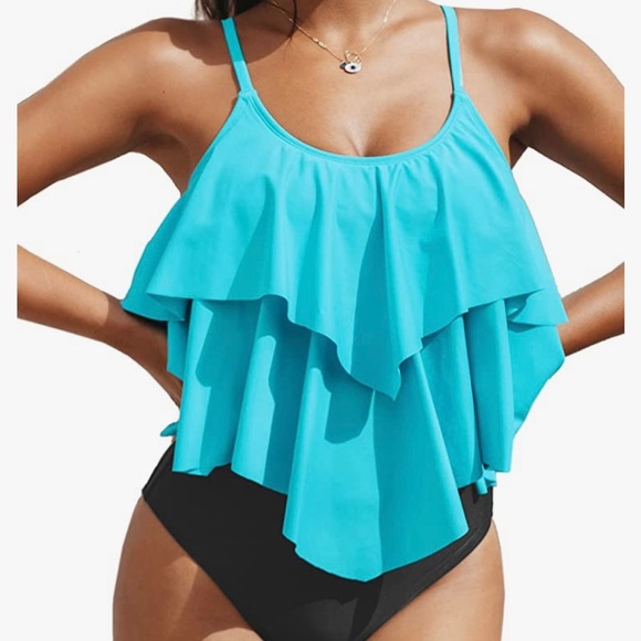 Lunabelle Women's Flounce Tankini Swimsuits Two Piece Tummy Control Bikini Bathing Suits with Scoop Neck