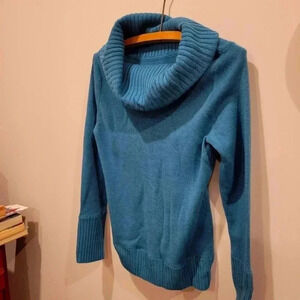 Womans Teal Cowl Turtleneck Sweater Fine Knit M