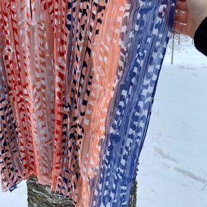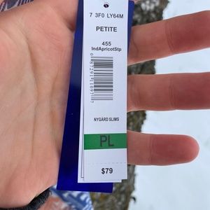 Woman's tunic style top. Nygard brand with original tags attached ($79). Multi colored pattern with attached navy camisole. Size petite large