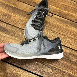 Woman’s UNDER ARMOUR training sneakers. Gray/black. New condition. Size 9.5. Cushioned sole.