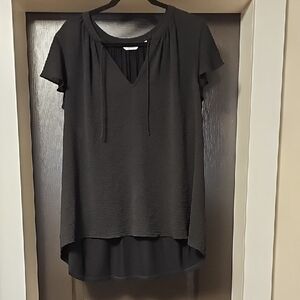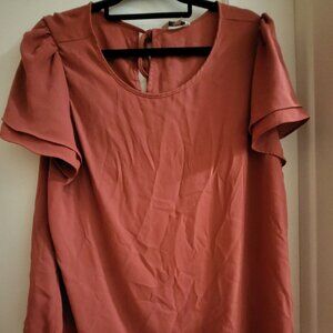 Very cute woman’s red blouse. Flutter cap shoulders and ruffle along the top. Light and airy. Size 2x From Reitmans
