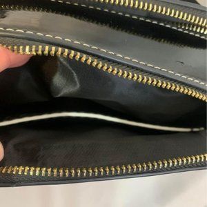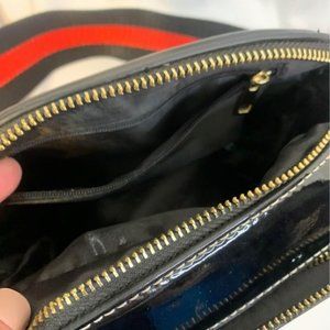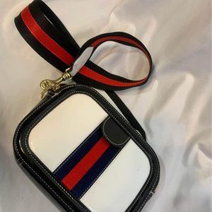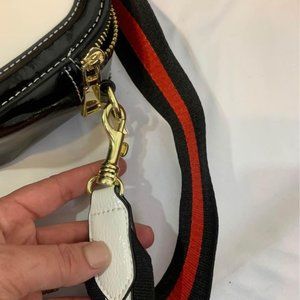 Womans bumble bee preppy patent leather box crossbody bag. Thick strap.