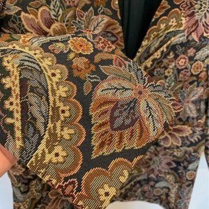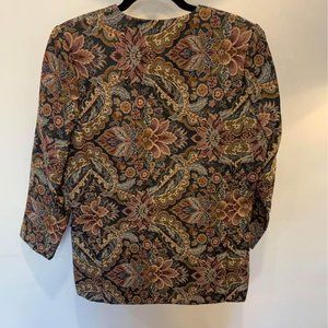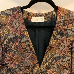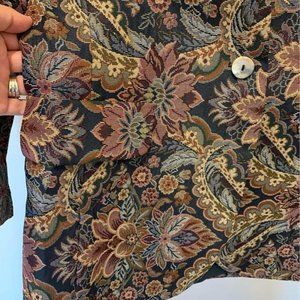 Woman’s floral blazer. Cleo petites size 6. No collar. Curved hem. One button.