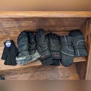 Hot Paws gloves are new with partial tag pink and black Youth L, Eddie Bauer Mitts Size S with light wear, Thinsulate Mitts unbranded New without Tags adult S, Mini gloves new with tags O/S.