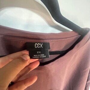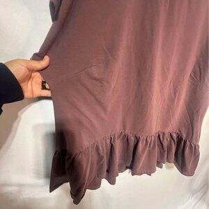 Womans loose ruffle hem t-shirt. Dark mauve. Size XXL. Soft and stretchy.