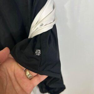 Woman’s one piece swimsuit with white sash. Size Large. Excellent condition. Built in bra. Wear the sash as a bow in the back or side or front.