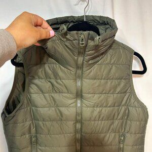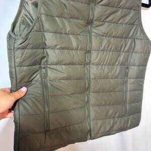 Woman’s puffer vest. Army green. Size large. New condition. lightweight. Great for everday wear.