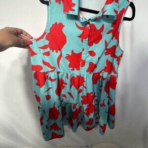 Woman’s ruffle hem sleeveless sundress. Teal/red. Size XL (12). New!