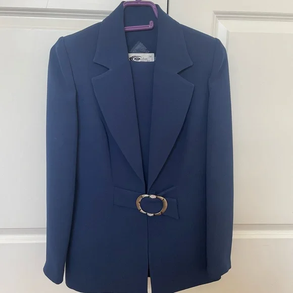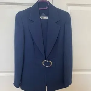 Woman’s formal suit ,with pants ,navy blue ,almost brand new ,I used it once! from turkey ,best material and tailoring ,medium size.