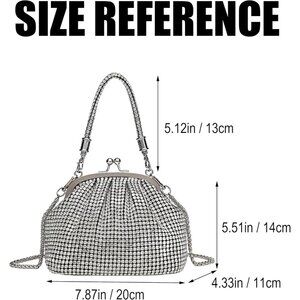 ✨ Sparkle & Space:This rhinestone bag features a roomy interior to hold your all your essentials such as phone, keys, and makeup, while its compact design ensures it doubles as a show-stopping silver clutch for effortless elegance.