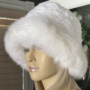 Women Beautiful Knitted Authentic WHITE FOX Fur Hat