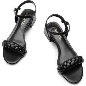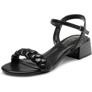 🆕 Women Black Braided Open Toe Ankle Strap Block Chunky Heel Sandals Wedding