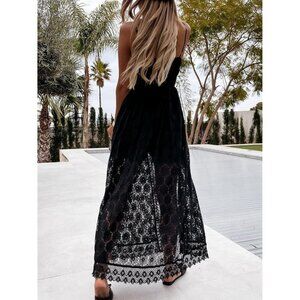 🆕Women Black Cotton Ruching Smocking Jumpsuit Summer Slip V-Neck Backless Maxi