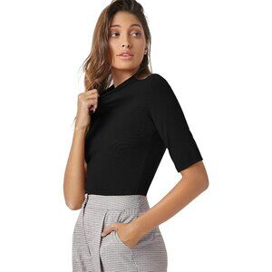 🆕Women Black Cotton Summer Top Casual Mock Neck Slim Fit Short Sleeve T-Shirt