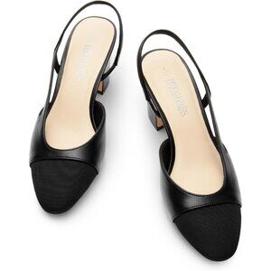 🆕Women Black Faux Leather Closed Round Toe Low Chunky Heel Slingback Pumps Shoe