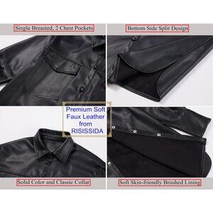 High Quality: The casual pleather button down shirt with long sleeves for women is made from a premium, super soft PU leather. This elegant and fashion leather shacket for women is finely textured, wind and water resistant, keeping you dry and warm in light rain. Great for layering or worn on its own tucked in. Especial button up blouse suitable for spring and fall.