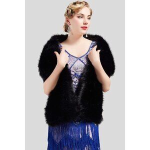 🆕 Women Black Large Faux Fur Collar Shawl Scarf Wrap Evening Cape Winter Coat