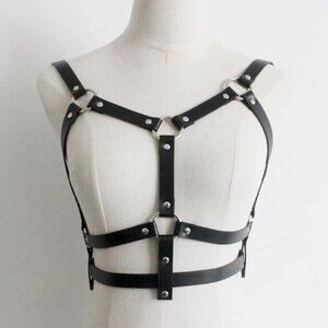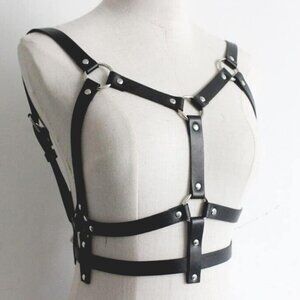🆕Women Black Leather Chest Harness Body Waist Chain Rave Sexy Jewelry Accessory