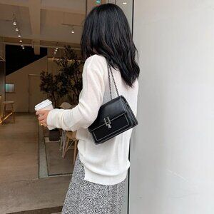🆕Women Black Leather Crossbody Bag Small Shoulder Purse Satchel Evening Chain