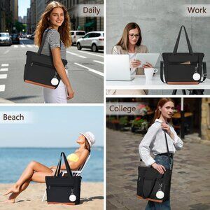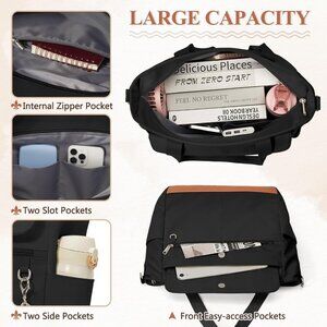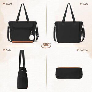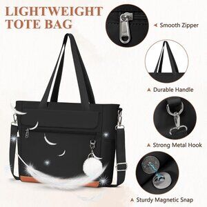 MULTI-POCKET TOTE BAG:The tote bag with secure zipper is super comfy and spacious to organize all your daily items. Inner: 1 main large compartment, 1 wall zipper pocket and 2 slot pockets. Outer: 1 front zipper pocket, 1 magnetic pocket, 2 side pockets. Also, detachable keychain keeps keys easy access. No more digging for keys!