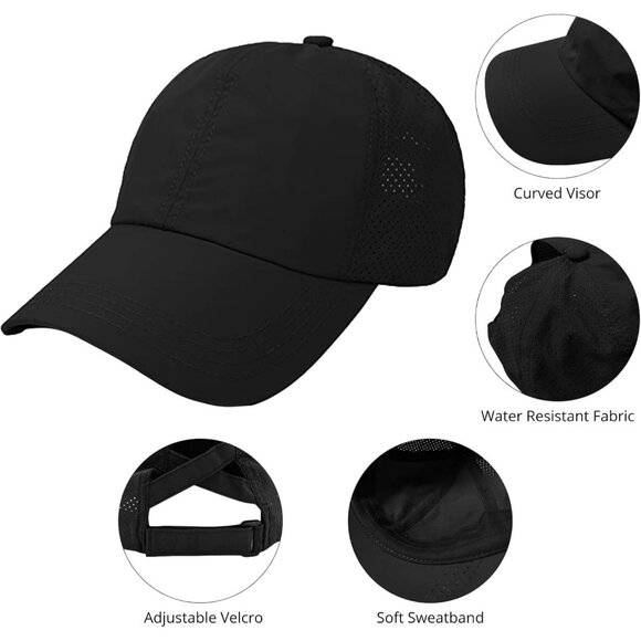 🆕Women Black Nylon Adjustable Ponytail Baseball Cap Quick Dry Sun Hat UV