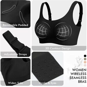 🆕Women Black Nylon Wireless Full Coverage Seamless Padded No Underwire Bra