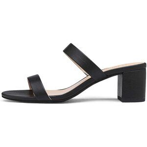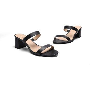 🆕Women Black PU Polyurethane Two Strap Open Toe Low Block Chunky Heel Sandals