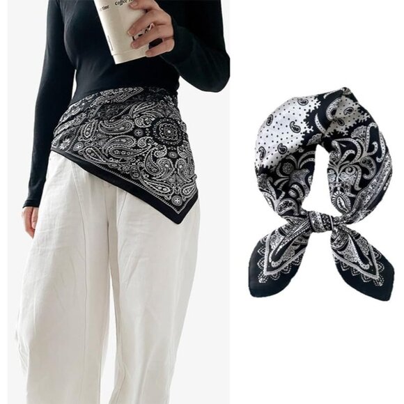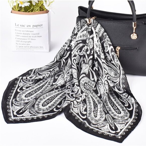 Women Black Paisley Headscarf Satin Bandana Pattern Polyester Breathable Scarves