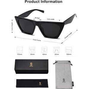 🆕Women Black Polarized Cateye Oversized Square Trendy Sunglasses All Black
