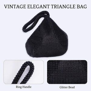 🆕Women Black Polyester Beaded Clutch Purse Vintage Triangle Bag Prom Wedding